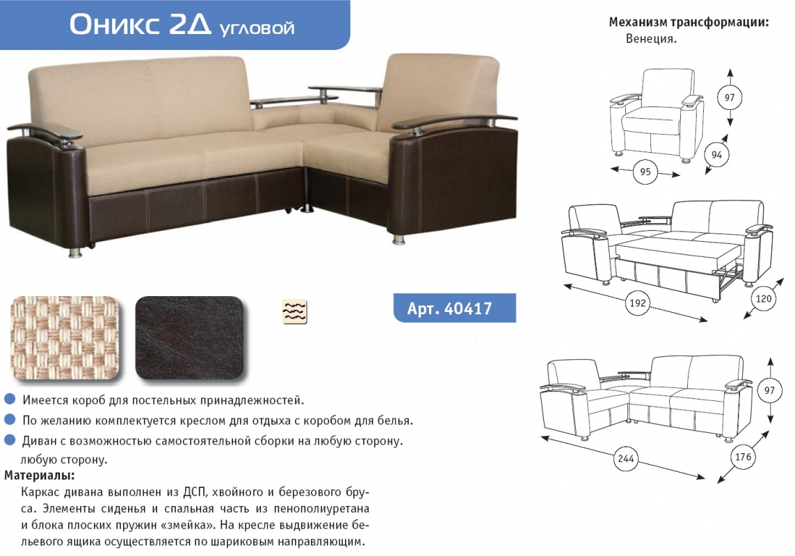 Диван с возможностью самостоятельной сборки на любую сторону.