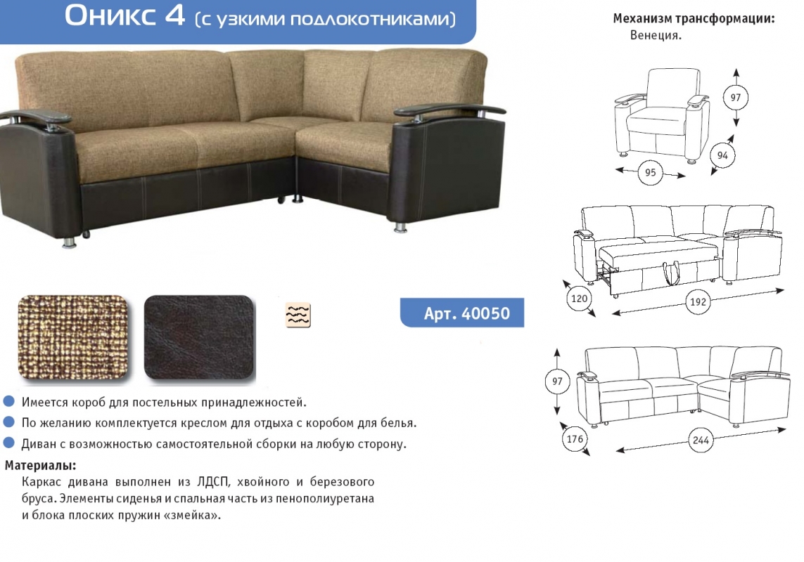 Диван с возможностью самостоятельной сборки на любую сторону.