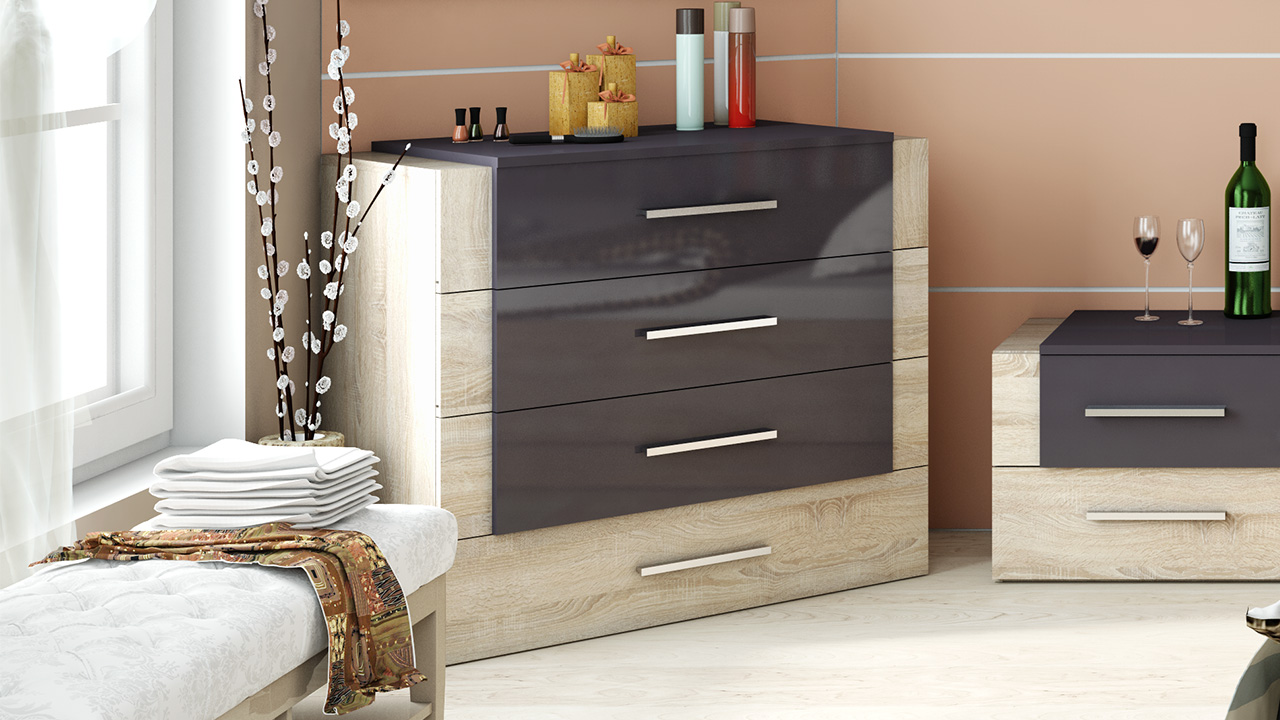 каркас: Дуб Сонома, отделка: Какао глянец