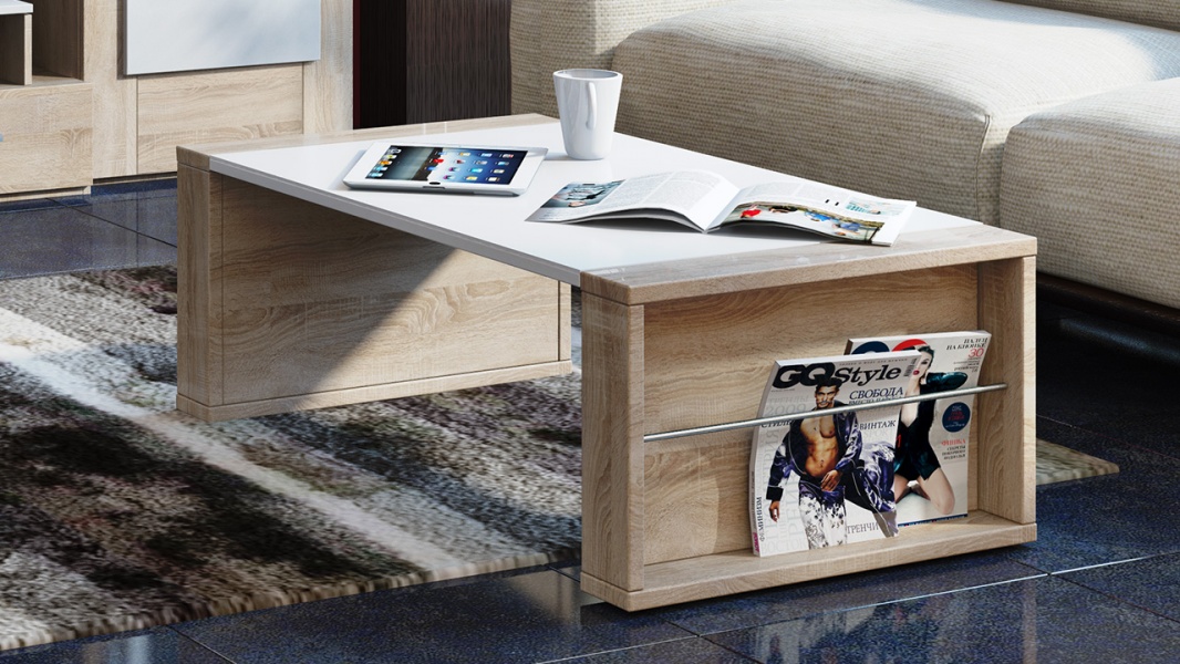 каркас: Дуб Сонома, отделка: Белый глянец